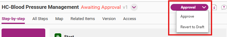 If you agree with all the changes, click Approval to approve a new process version. You have the option to either approve the process or revert it to a draft.