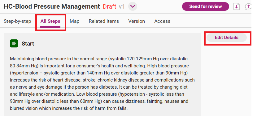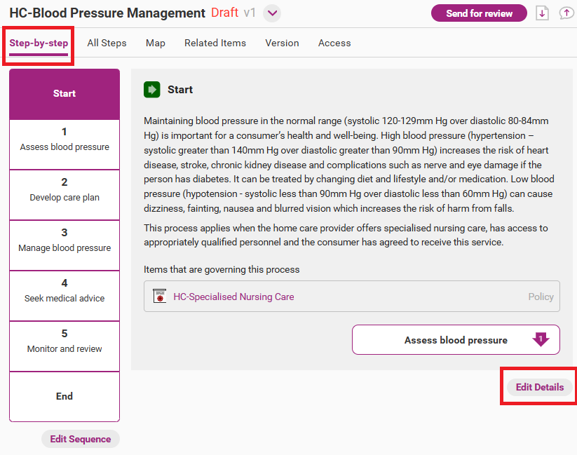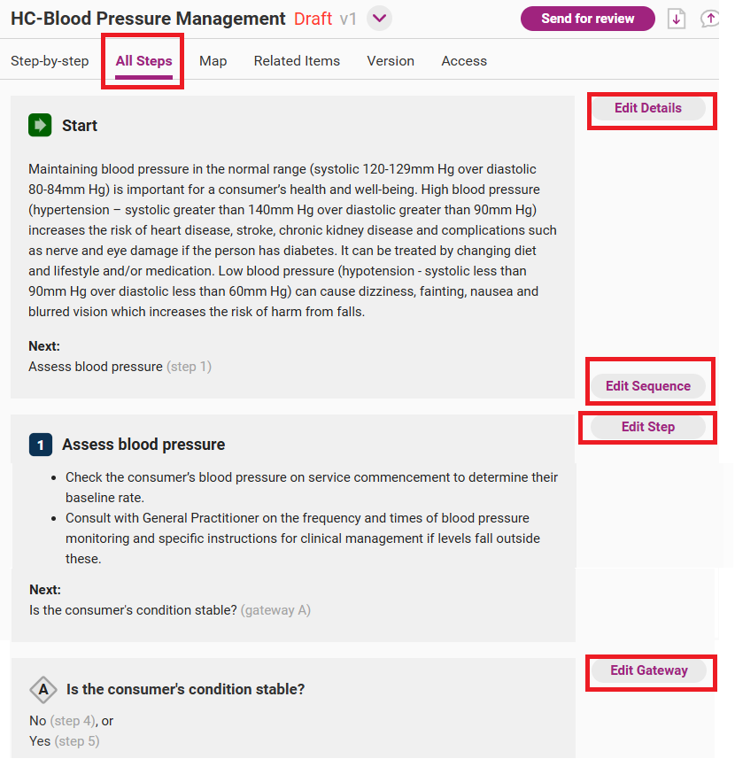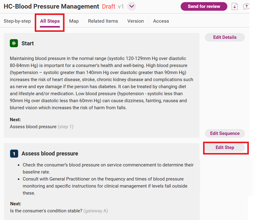Open the edit step page from the draft version of the process by clicking on Edit Step next to the step you wish to edit. If editing the entire process, you will need to open each step separately to edit.