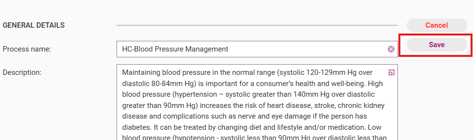 Process name | The title of the process. This is the only compulsory field. |