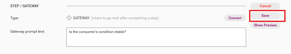 Type | You can make this section either a step or a gateway point. Please note: the first step cannot be a gateway point. |