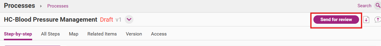 Once you have completed all changes you need to approve your process and confirm publication. QMS Administrators and Model Administrators can approve and publish processes.