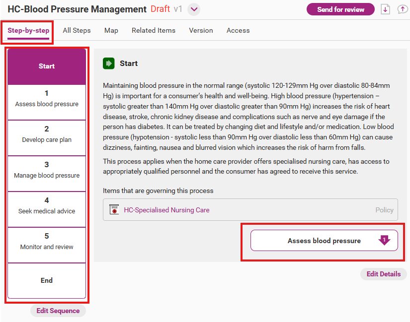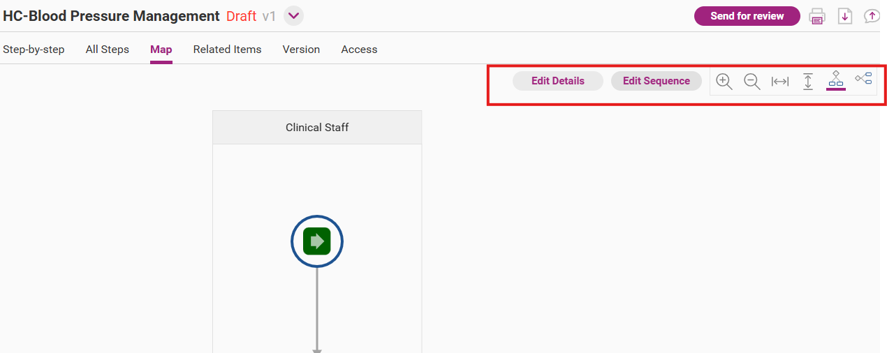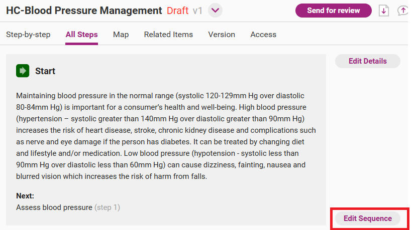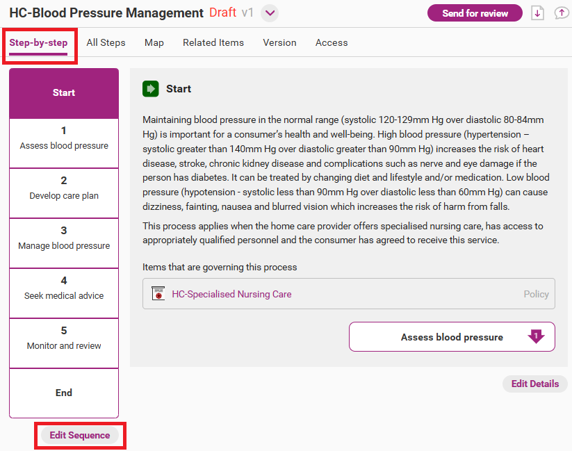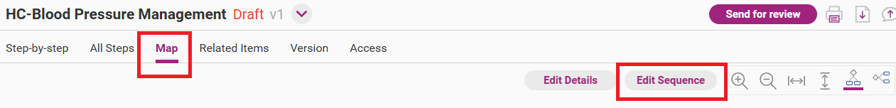 Open the edit sequence page from the draft version of the process by clicking on Edit Sequence.