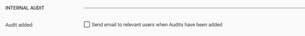 Use this tick box to direct the system to send an email alert to Users who have been assigned Audits to complete, or if new Audits have been raised that any Audit Approver can complete. This email will be sent after a delay of a few hours.