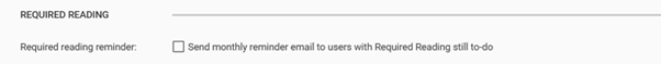 Use this tick box to direct the system to send a monthly email reminder to Users that have outstanding Required Reading tasks. The emails will be sent on the first of each month.