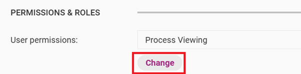 Click Change under User permissions and choose the permissions you want to give the new users. The system will default to Process Viewing level access if no other option is selected.