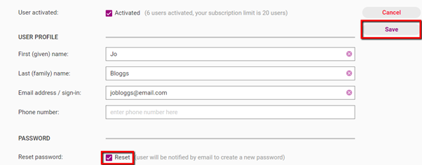 Enter the user’s details into all the relevant fields.