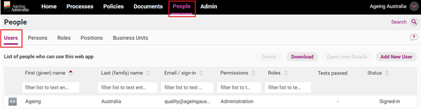 QMS web app administrators can choose which personnel within their organisation can access the QMS. They also have the ability to temporarily deactivate and/or delete users.