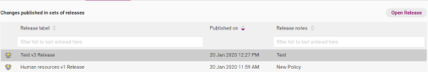 Release notes | The official overview of all changes and updates. If you have made multiple changes in one release (e.g. you published new versions of multiple policies) this will be an overview of the various changes you made to all items. |