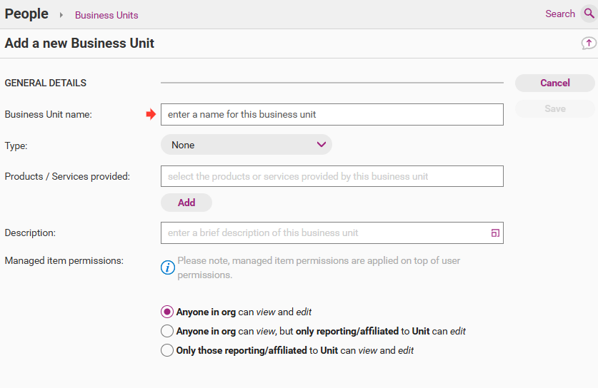 Add a Business Unit