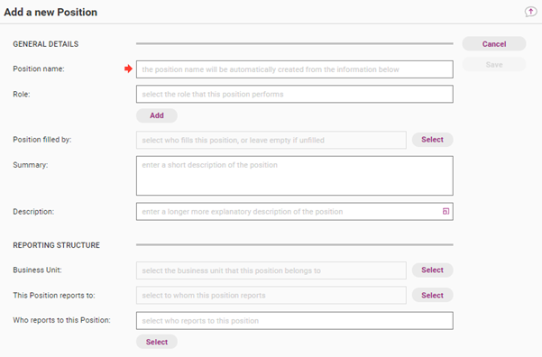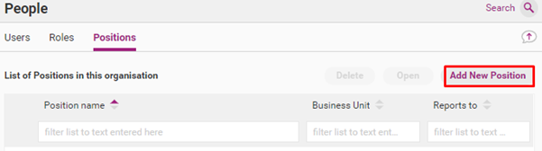 Positions are used to assign certain Users who hold the Position as responsible for Register Items. Positions can be created for specific job titles, e.g. Chief Executive Officer, General Manager of Quality, Team Leader South Team, etc.