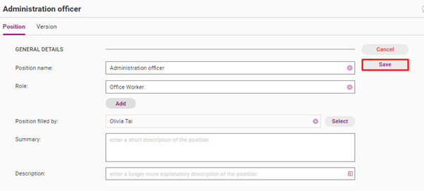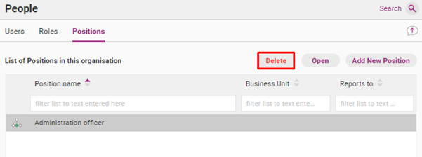 Deleting a position will retroactively edit the register items which are linked to that position. For this reason we recommend renaming the Position instead to show it is archived.