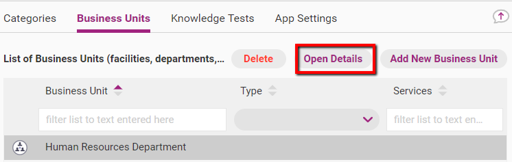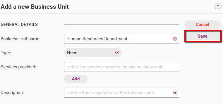 Services provided | The services the business unit provides. This section is optional. |