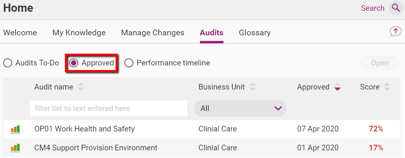 The score of your internal audit will also be available in Timeline view. This will allow you to see the approved audit in context with the rest of your audit schedule.