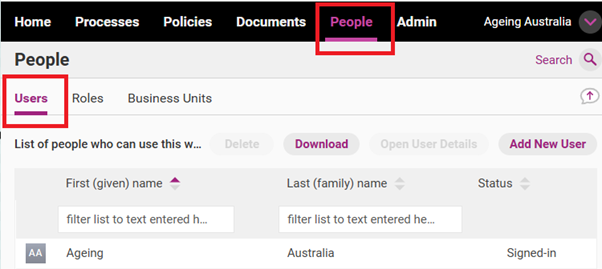 Click on the People tab and the Users sub tab.