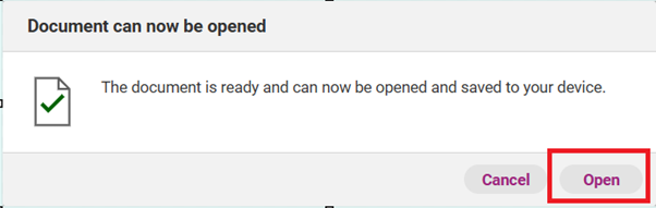 The report may take a few moments to process. When ready, click Open to view the report.